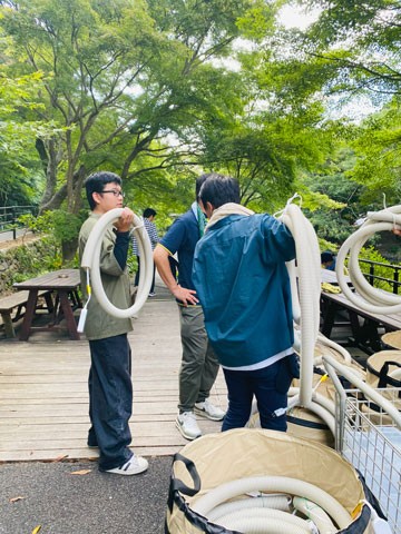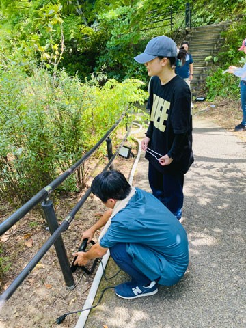 魔法の杖と発光・音響システムのパラメーターを学び、実際の池の円周にどう配置するかなどをイメージしました。