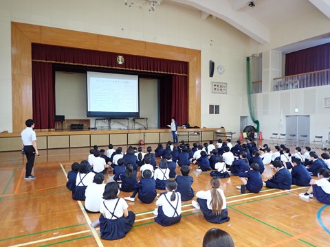 西工大 チャレンジ授業苅田町立馬場小学校で防災授業
