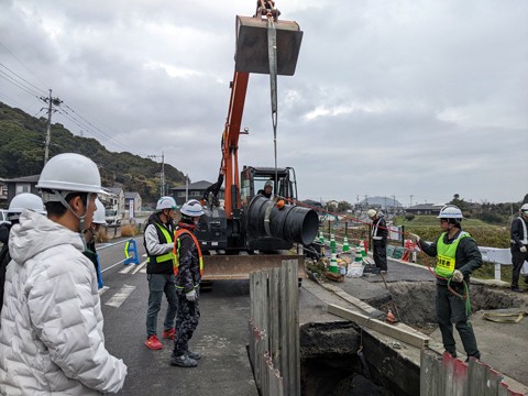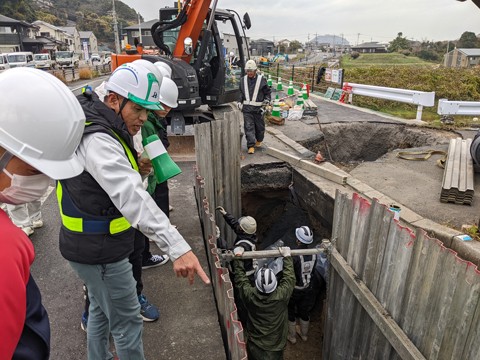 西工大 チャレンジ授業水道用水供給事業(行橋市・苅田町)送水管布設工事現場を見学[有限会社大膳建設主催]