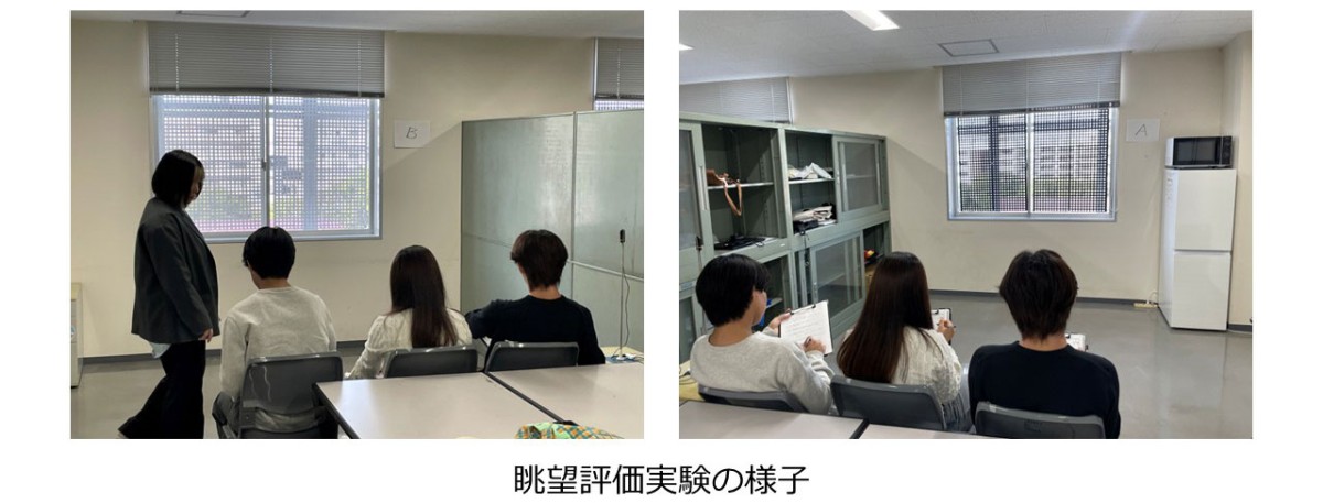 設計段階で適用することを目的として、オフィスビルの窓から見える眺望性能評価に関する研究を行っています。眺望の質と眺望の量に関して見えるも景色の種類から評価する方法を提案しています。現在は、有孔折板やルーバー等、日射遮蔽装置を備えた建物を対象に窓から見える眺望に関する評価を行っています。本研究は、九州大学、大林組との共同研究にて実施しています。