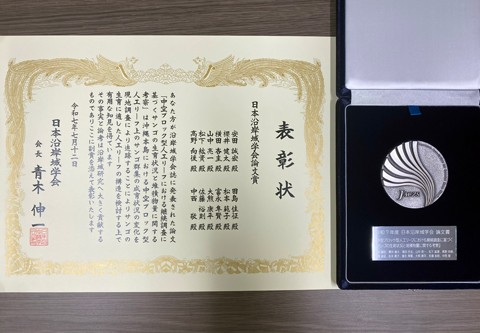 受賞した論文は、「中空ブロック型人工リーフにおける継続調査に基づくサンゴの生育状況と堆積物量に関する考察」[安田 誠宏、櫻井 健太、横田 杏圭、山中 亮一、松下 紘資、髙野 向後、田島 佳征、松本 範子、富永 隼賢、大熊 康平、佐藤 裕則、中西 敬]で、沿岸域学会誌2024年Vol.37,No.2に登載されています。