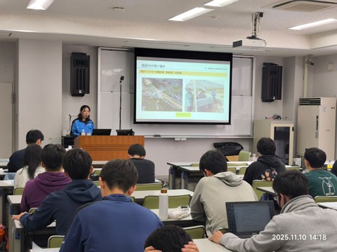 工学部 総合システム工学科 土木工学系2年生を対象に開講している「環境学」の2025年7月9日(水)の講義では、一般財団法人九州環境管理協会 後藤祐哉氏にご講演いただきました。