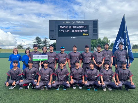 2025年9月6日(土)より富山県岩瀬スポーツ公園ソフトボール広場で開催された「第60回全日本大学男子ソフトボール選手権大会」に本学ソフトボール部が出場しました。本学の全国大会への出場は3年連続となります。1回戦は昨年準優勝し今年度の西日本大学ソフトボール選手権大会優勝校である同志社大学との対戦で、残念ながら0対2で敗戦となりました。
