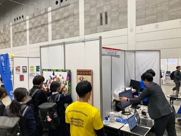 2025年12月11日(木)・12日(金)に北九州メッセを会場に開催された「北九州ゆめみらいワーク2025」にブース出展し、「北九州をデザインがあふれる街に!」を合言葉に、学生が中高生たちに活動をPRし、楽しんでもらいました。また、客員教授の木村先生と安先生が指導している情報デザイン学科3年生のウェブ研究室5名がメインとなって、Vtuberなどの体験を提供し、中高生にデザインやプログラミングの楽しさを伝えました。