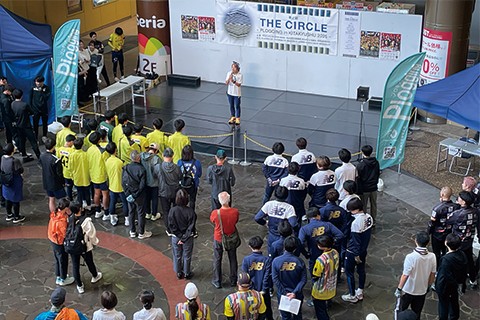 ジョギング×ゴミ拾いの新しいフィットネスといわれるプロギングですが、「THE CIRCLE プロギング in 北九州2025」では街をきれいにするための活動に必要なアイテムの支給やチーム対抗も行われました。そして、プロギングの後にはミクニワールドスタジアム北九州でのサッカー観戦でギラヴァンツ北九州を応援しました。