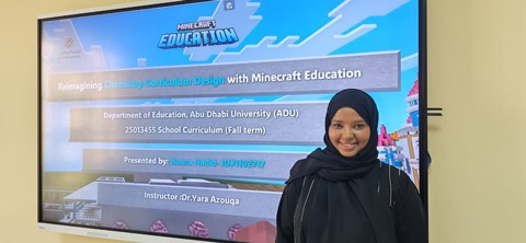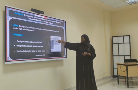 本学の大学院工学研究科 生産システム分野に所属するシュク ガン さんと指導教員の古門良亮 准教授らが開発・研究した成果が、UAEのAbu Dhabi Universityの授業に活用されました。2025年9月21日の同大学の授業内セッションにおいて、Al Mukhaini氏(教職専門職ディプロマ〔PGDip〕課程に在籍)が本学の化学ワールドを教材事例として発表しました。