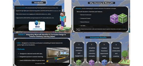 - Integrating Minecraft Education in Curriculum Design to Enhance Chemistry Learning, Procedia Computer Science 246, 4375–4384 (2024). Ryousuke Furukado et al. 研究の背景・教材設計・評価枠組みを提案。