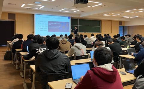 2025年11月18日(火)の「スポーツ工学II」の講義は、ミズノ株式会社グローバルイクイップメントプロダクト部 主席研究員の長尾裕史氏をお招きして特別講演を実施しました。