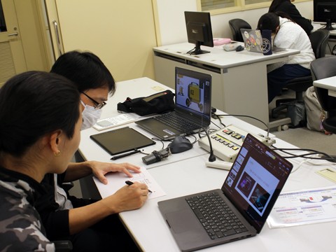 講師の自己紹介や御前氏による実演が行われた後、学生たちが事前に考えてきたペルソナに対し、「モチーフからどのようにアイデアに繋げるのか?」をテーマに各々で制作に取りかかりました。講師の方々と話したり、スケッチを描いていただいたりしながら講義が進められました。ダイハツ工業株式会社 デザイン部の方による講義は今年度3回計画されており、次回は12月と1月に実施される予定です。