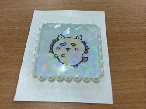 意外なメイン材料として使用したのは、なんと100円ショップの「透明耐震ジェルマット」。その弾力と透明度を生かし、ビーズやラメでデコレーション。身近な防災グッズが、魔法のように可愛いシールに生まれ変わります。