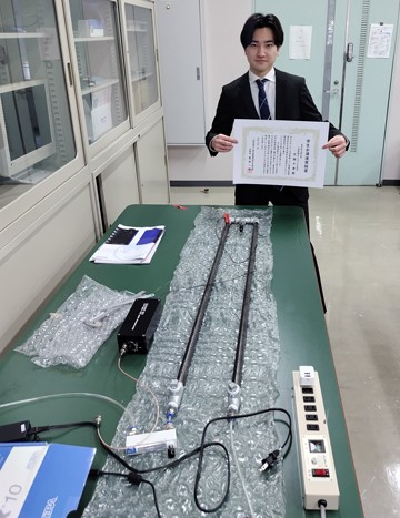 発表テーマは、「FPGAを用いた音響計測によるガス漏洩検知システムに関する研究」。本研究では、音響計測に基づくガス漏洩検知システムの構築を目的とし、ガス漏洩時に発生する超音波成分を広帯域 AE センサにより検出した。本発表内容は研究の技術的有用性が高く評価され、学生会講演奨励賞を受賞する成果を得た。本賞の受賞により、音響計測とFPGAを融合したガス漏洩検知技術の有効性を対外的に示すことができるとともに、西日本工業大学における半導体関連研究および教育・研究活動の取り組みを広くアピールする機会となった。