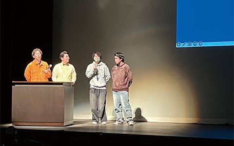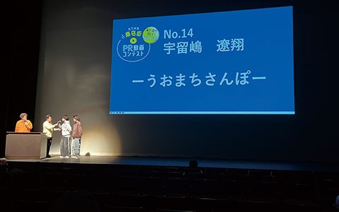 2026年2月11日(水・祝)に北九州芸術劇場・中劇場で開催された、北九州市商店街PR動画コンテスト 公開審査会(主催:北九州市、共催:北九州商工会議所)において、デザイン学部 情報デザイン学科1年生チームの作品(作品名:– うおまちさんぽ –)が「審査員特別賞」を受賞しました。