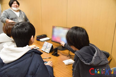 本同好会からは10名(学生8名、教職員2名)が参加し、会場ではeスポーツチームのロゴ作成体験ブース、2種類(スイッチスポーツ、スマブラ)のeスポーツ体験ブース、eスポーツの実況体験ブースに分かれて午前と午後の2回、子どもたちに体験ブースの説明やサポートを行いました。学生が子どもたちに隣で声をかけながら一緒に体験することで、自然と笑顔や会話が生まれていました。